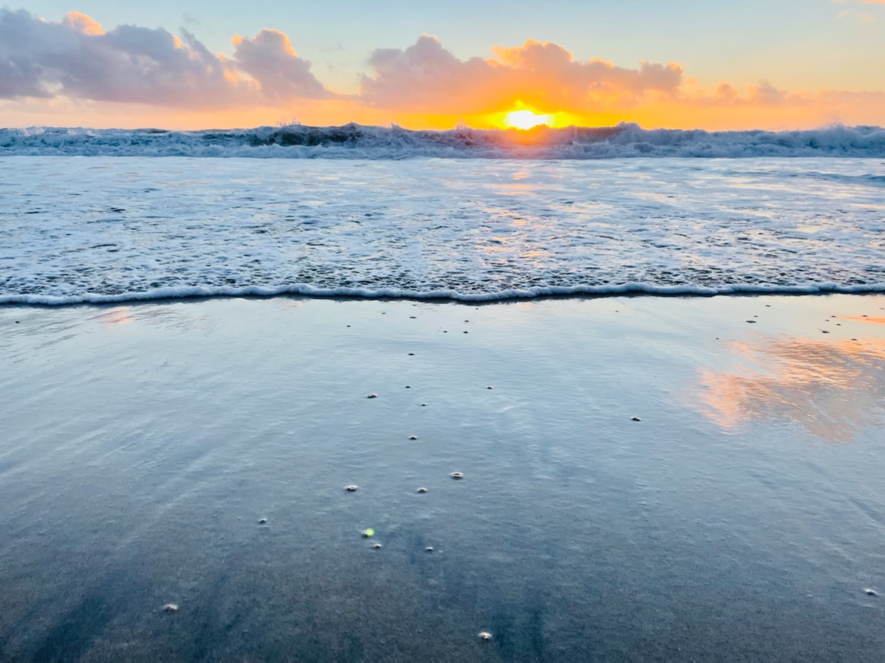 In these moments, I picture myself inside God’s rock of refuge, breathing in the sweet aroma of grace. God’s gift of grace smells like an ocean breeze wafting into my nostrils. God’s kindness tastes like a hint of salt as the ocean spray kisses my lips. Grace’s melody rushes into my ears with the crash of the ocean as waves smack the shore, softening to a gentle bubble gurgling over my toes. God’s favor feels like a sunset expanding after the storm, enfolding me as my feet dig into the grainy sand. Grace stretches before me in a collage of color, as perfect as its Creator.